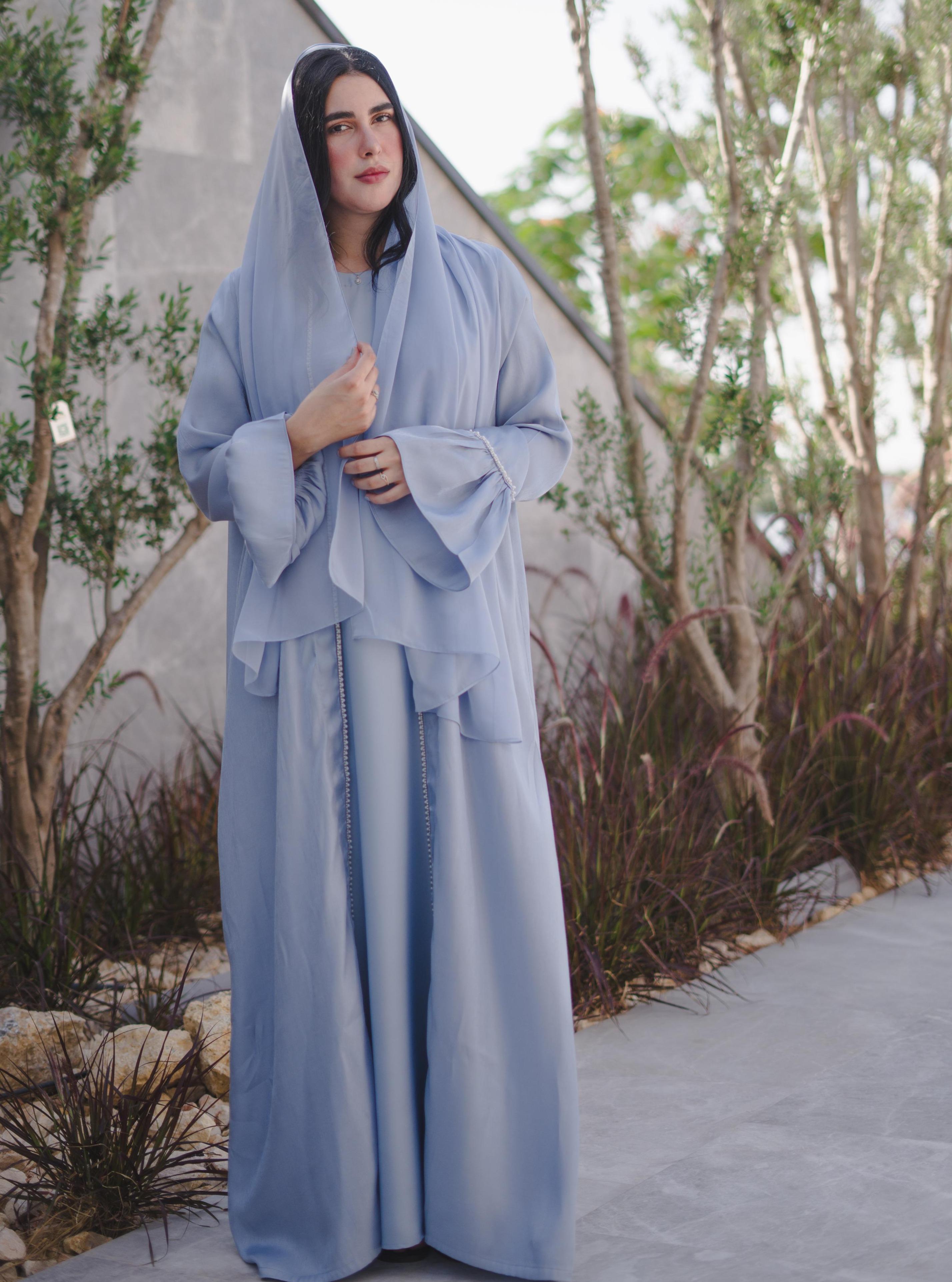 Embrace luxury with our sophisticated three-piece abaya set, crafted for elegance and comfort.