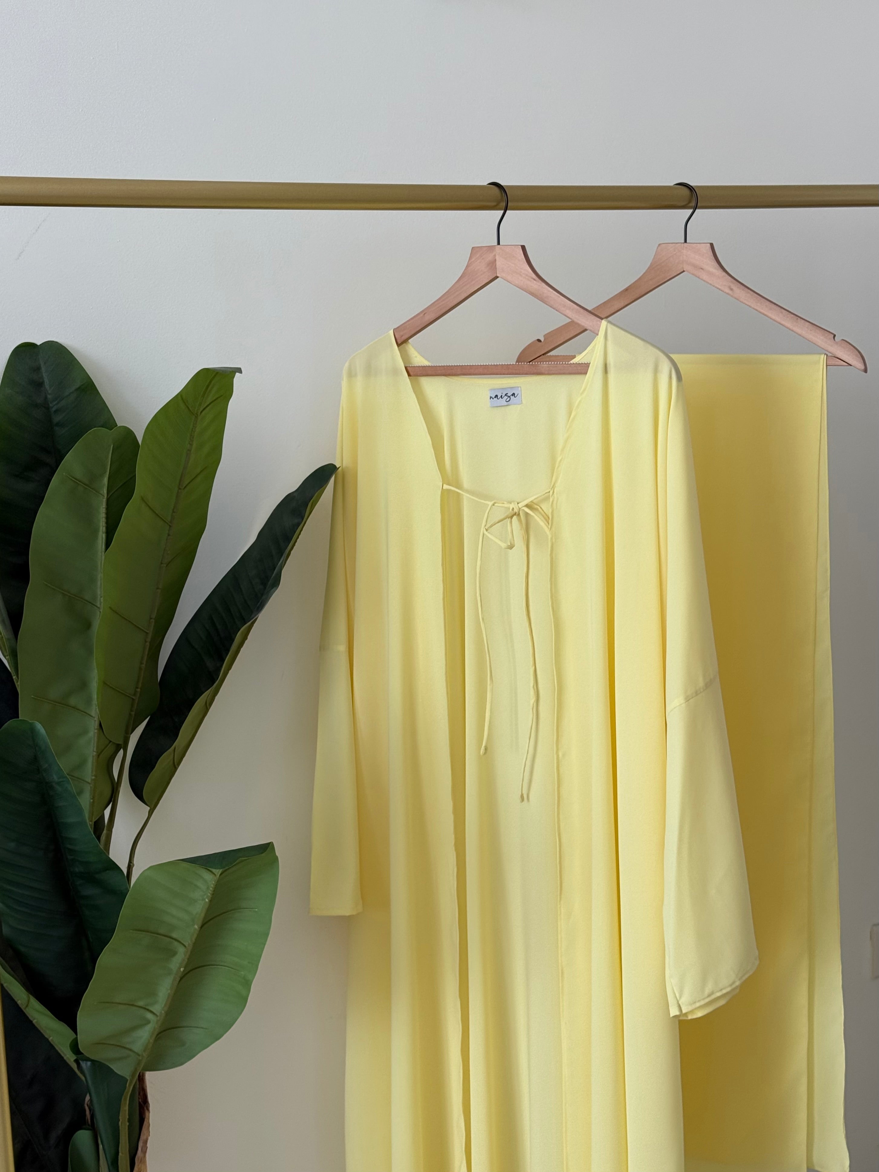 Our Still Summer abaya is crafted from premium chiffon georgette, making it the perfect daytime piece for breezy matcha dates and sunlit strolls. The delicate flow of the fabric offers a graceful drape and soft movement with every step.